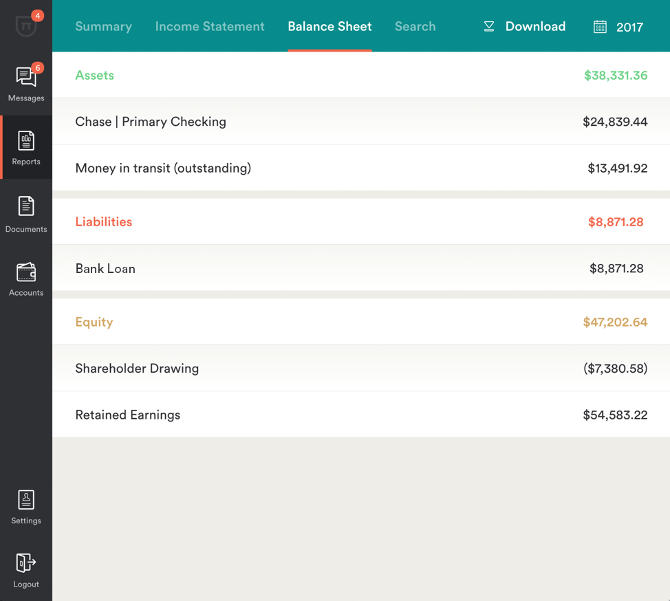 Here’s an example of what a balance sheet looks like if you’re a Bench customer.