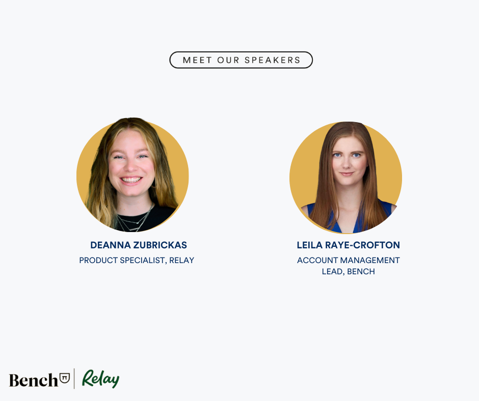 Want to avoid the scramble next tax season? Join Bench and Relay as we debrief tax season and help you set sustainable habits to make managing your finances and reducing your taxes easier this year.