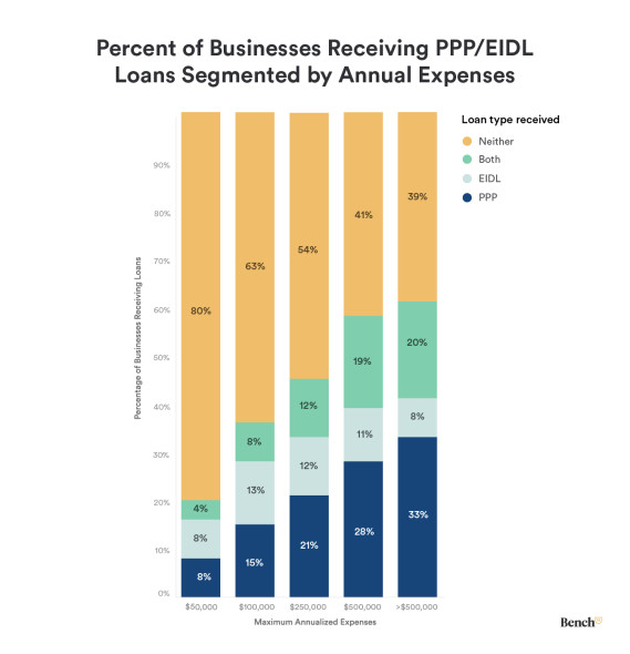 Since the PPP was announced, our teams at Bench have been assisting businesses with understanding the PPP and EIDL. We provided free consultations and a comprehensive set of resources dedicated to help business owners navigate the process of receiving the relief funding. In addition, our bookkeepers worked directly with thousands of our clients to help them complete their loan applications. These businesses we spoke with were telling a different story about the programs.