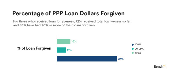 The good news is that of the businesses that applied for forgiveness, 72% received forgiveness on the entire PPP loan. Only 16% of those that applied received forgiveness on less than 90% of their PPP loan. We only expect these numbers to increase as the forgiveness process has been made easier in 2021. For example, businesses with loans of $150,000 or less now have a simplified forgiveness form.