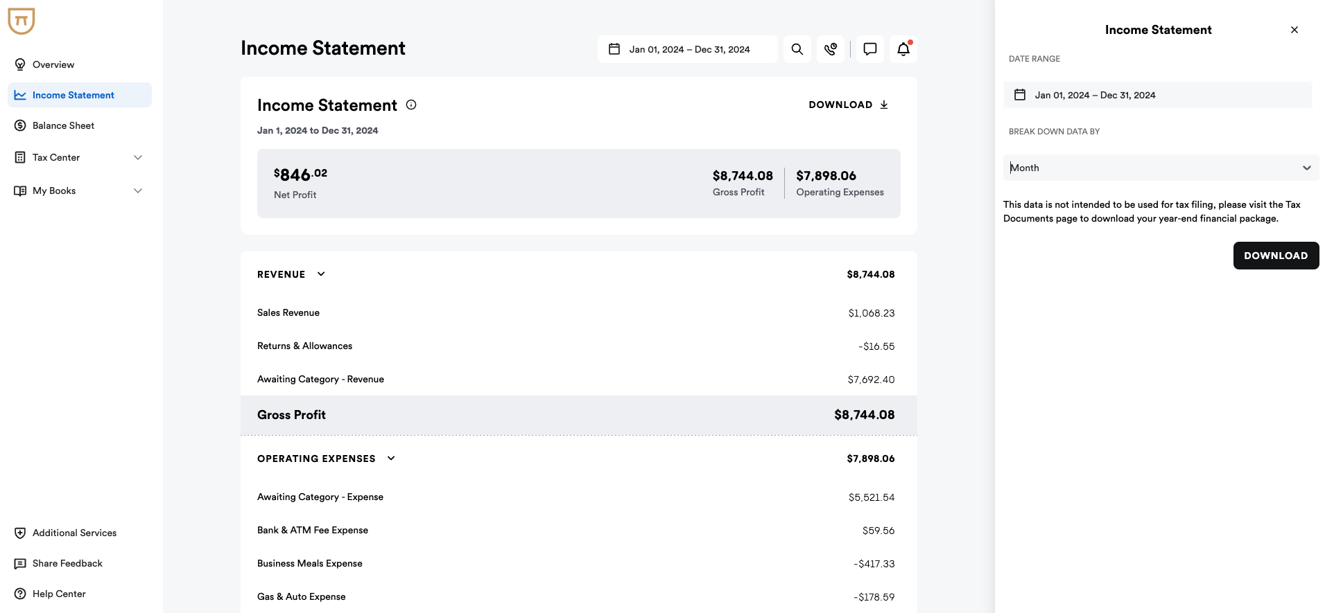 Step 1: Navigate to the Income Statement section of the app using the left navigation menu.
