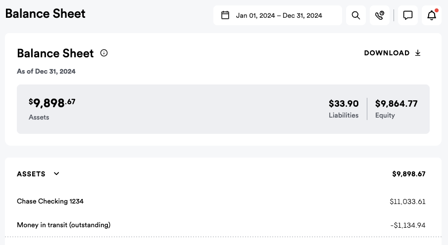 A balance sheet gives a snapshot of your financials at a particular moment in time. It incorporates every journal entry since your company launched. It can help you see the big picture: your business net worth, revenue, and where it’s kept. Your balance sheet is an essential report for getting investors, securing a loan, or selling your business.