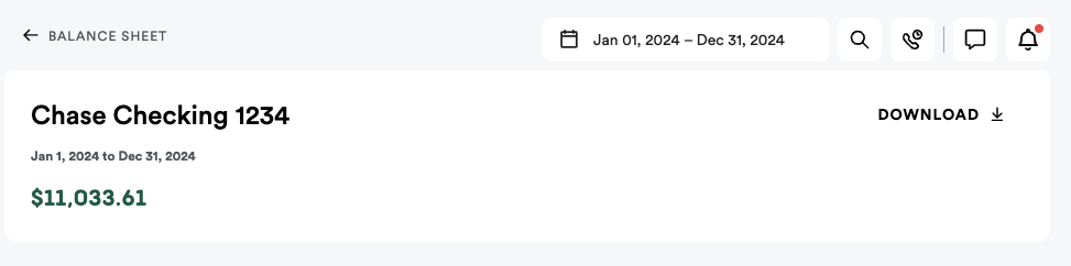 Step 1: Navigate to the Balance Sheet section of the app using the left navigation menu.