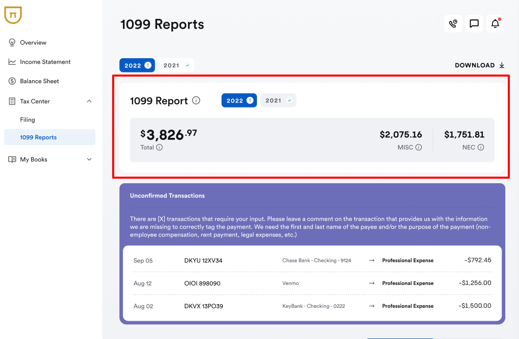 Step 1: In the Bench app, navigate to Tax Center -> 1099 Reports