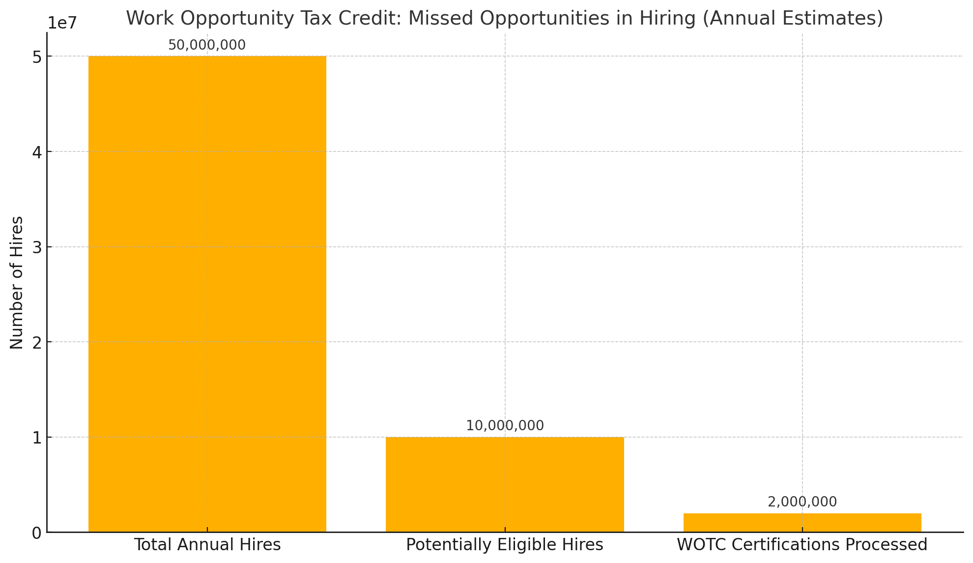 According to the IRS, the WOTC is worth up to $28,000 in tax credits for small business owners, yet US employers leave an estimated $2-$5 billion dollars every year in unclaimed credits.