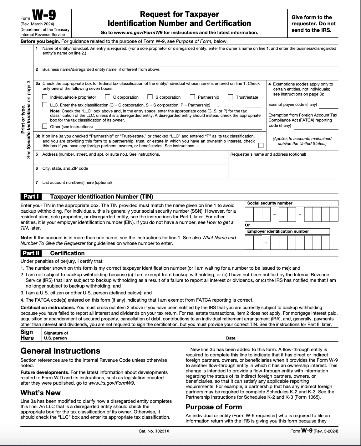 Changes to form W-9 for the 2024 tax year